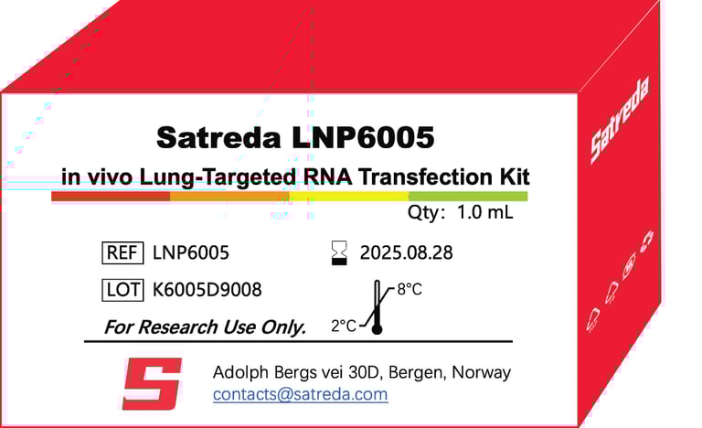 With its combination of precision targeting, high safety, and broad RNA compatibility, the SatredaLNP 6005 kit is a transformative tool for scientists exploring pulmonary disease mechanisms, RNA-based therapeutics, and vaccine delivery. Whether for preclinical studies, drug development, or translational research, this technology offers a scalable, reproducible, and cutting-edge solution that brings lung-targeted RNA delivery into a new era of precision medicine.