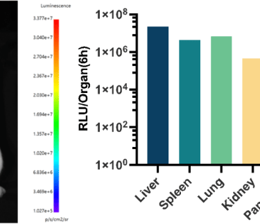 Intravenous (IV) Injection: Delivers strong expression in the liver and spleen, leveraging both passive liver targeting and optimized circulation properties — ideal for hepatic RNA therapy or systemic applications: