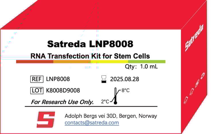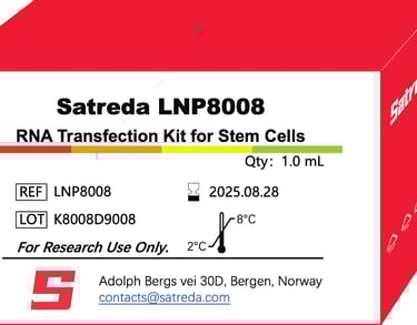 By combining high payload capacity, efficient delivery, low toxicity, and broad applicability, the Satreda LNP8008 kit empowers researchers to unlock the full potential of RNA-based applications in stem cell biology, regenerative medicine, and advanced therapeutic development.
